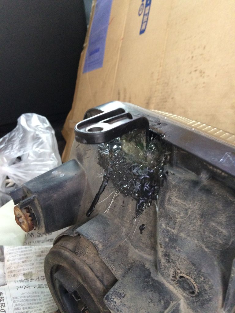 ついでに折れていたヘッドライトのステーもFRPで固めてみました。どの接着剤よりもガッチガチに固まりました。ステーだけで持っても全く問題ありません。