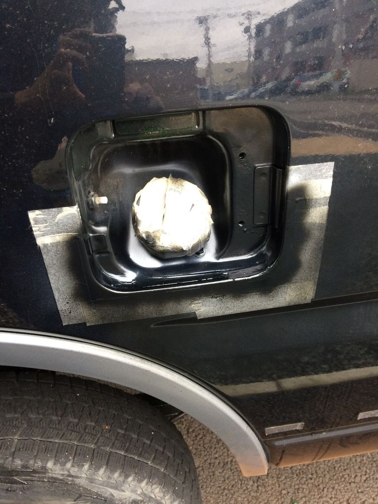リア側も塗装し、ついでに錆が出ていたルーフと給油口周辺も、ケレン→ラストボンド→塗装を実施しました。かなり適当です(笑)錆びなければいいのです。