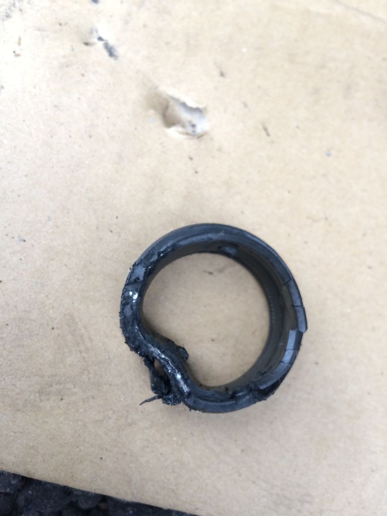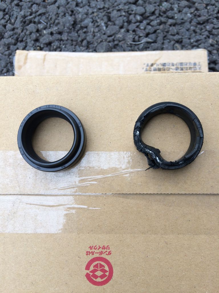 外したオイルシールです。中心部は鉄製のリングが入っており、それを変形させないと全く取れる気配がありませんでした。