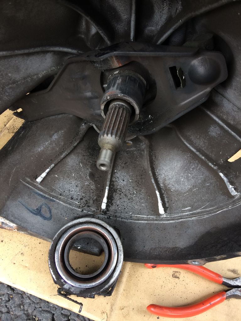 レリーズベアリングも外して清掃し、隙間にグリスをたっぷり押し込みました。