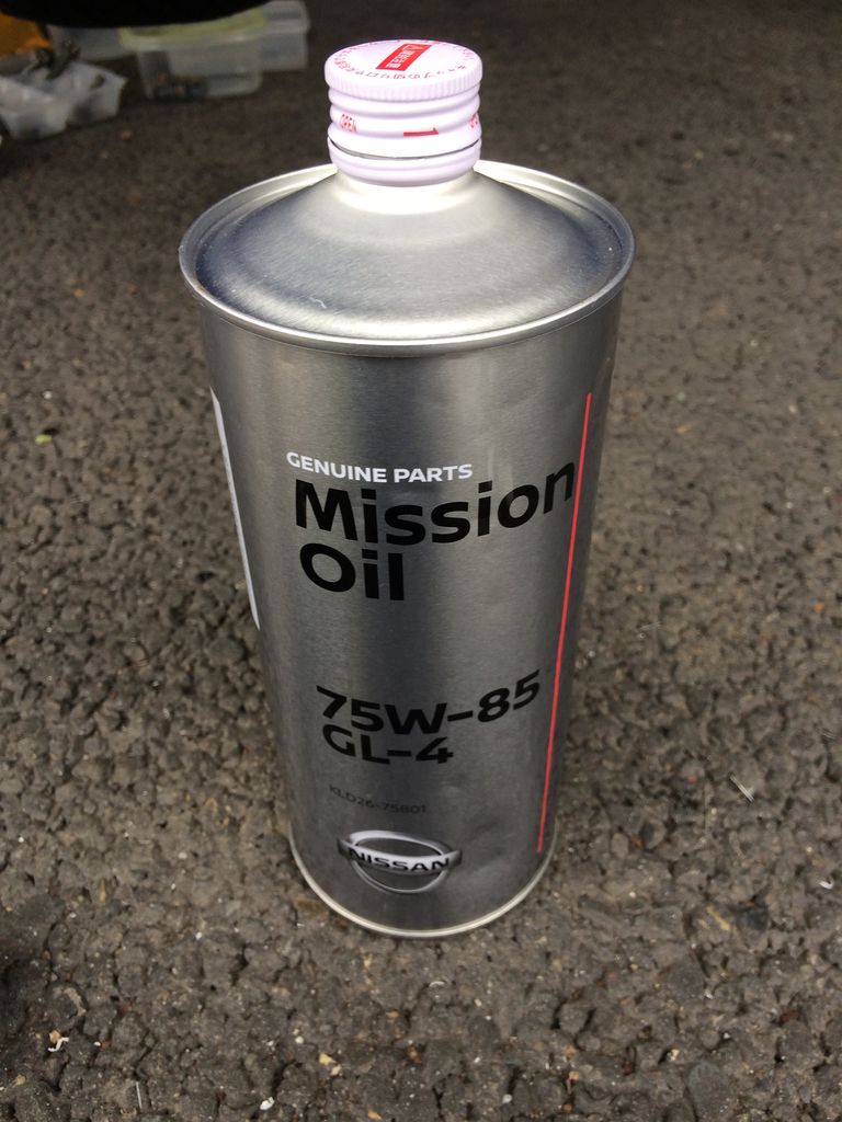 ミッションオイルは日産純正を使いました。値段が安く1L缶があるのでとても助かります。純正品質で安心感もあります。ミッションへの注入は灯油ポンプで行いました。とてもスムーズで全く問題ありませんでした。