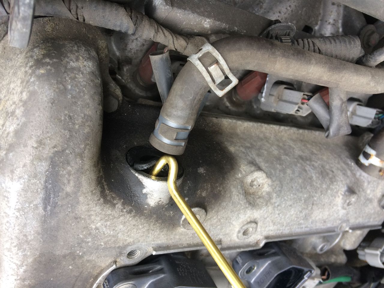 さくさくっとPCVバルブを取り外します。これははまっているだけなので、すぐ取り外せました。