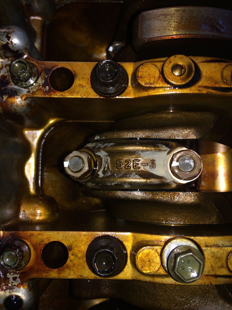 簡単にナットが取れました。後はコネクチングロッド本体を上に押してあげると、いとも簡単にピストンがエンジンから取り外しできます。
