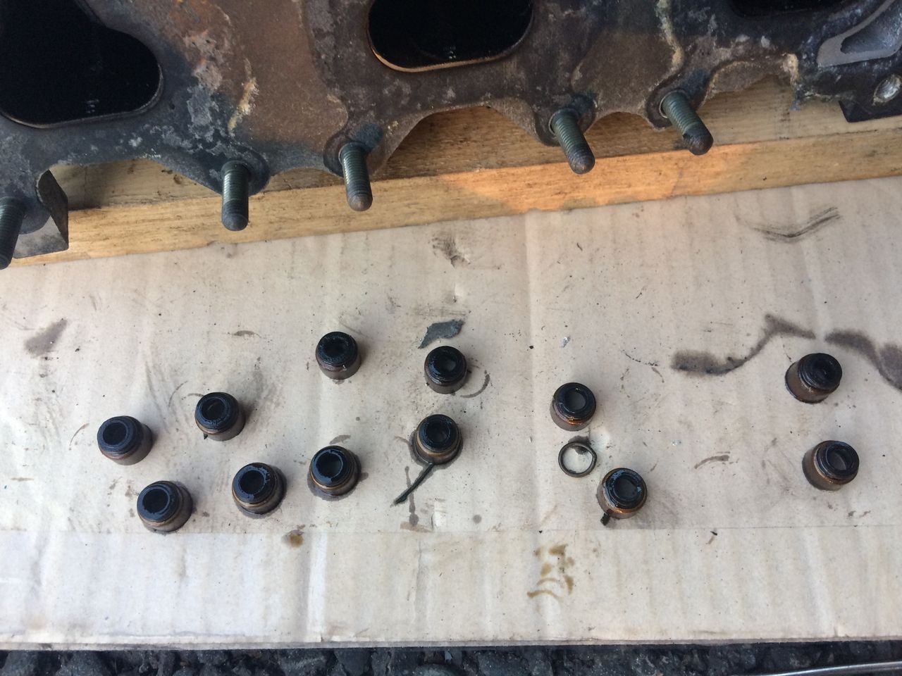 そして、最後にバルブステムシールを取り外します。これはラジオペンチなどで掴んでグリグリすれば外れます。周辺を傷つけないように注意しましょう。これは再利用不可なので新品と交換します。