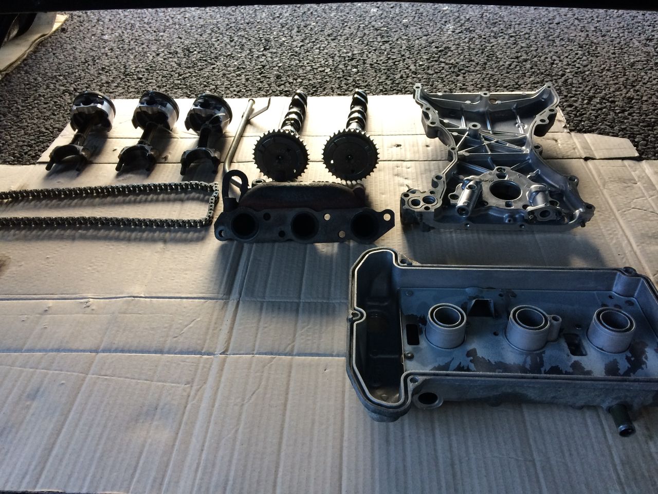 すべての部品が取り外され、シリンダーヘッドがすっきり軽くなりました。この後、他の部品と一緒に洗浄していきます。